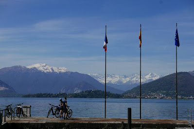 Jako się rzekło, Laveno jest w Lombardii, a Intra już w Piemoncie, cztery i pół kilometra dalej. Miasto, zrośnięte z sąsiednią Verbanią widać na zdjęciu, w oddali, w cieniu Alp Leopontyńskich (po prawej) i Pennińskich, widocznych tu po lewej stronie, w osi doliny Toce.